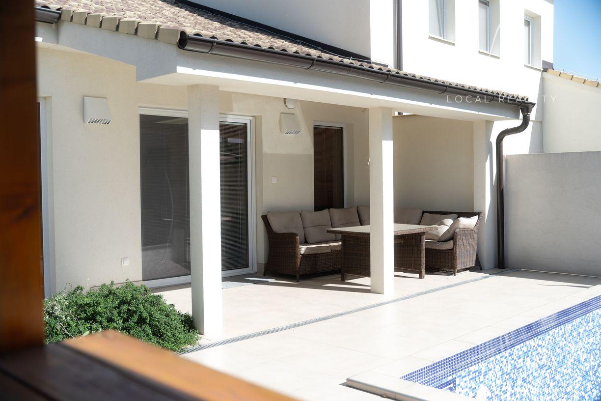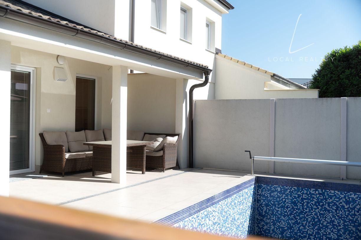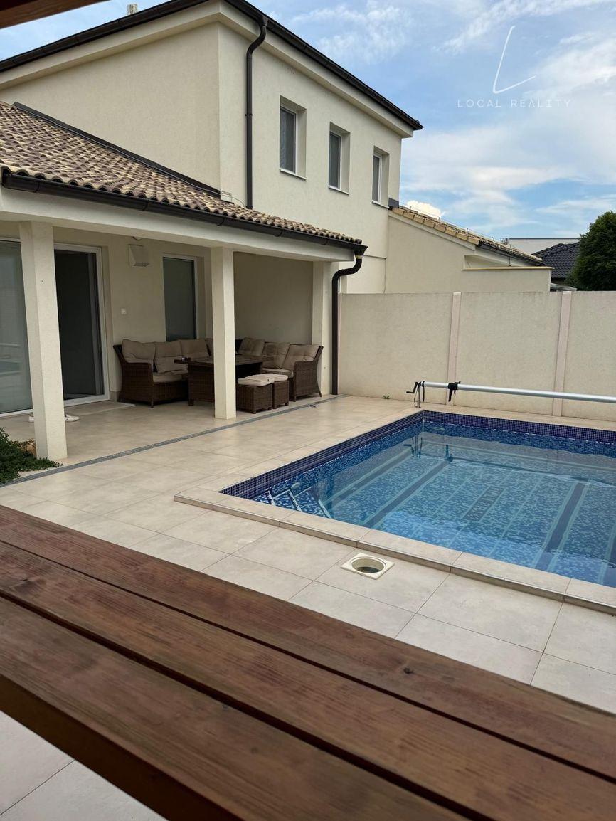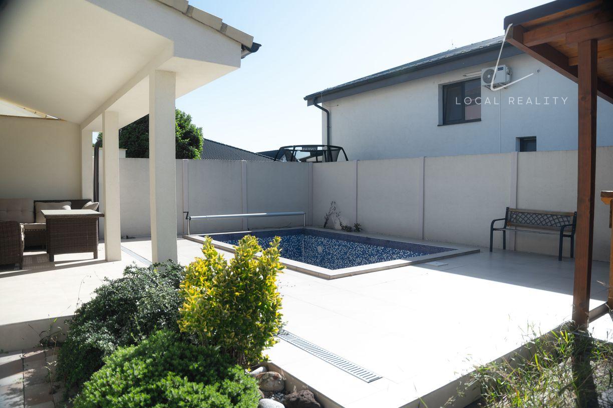 Veľkou výhodou domu je bazén 3x5m s tepelným čerpadlom, osvietením a automatickým vysávačom, ktorý Vám celoročne navodí pocit dovolenky.