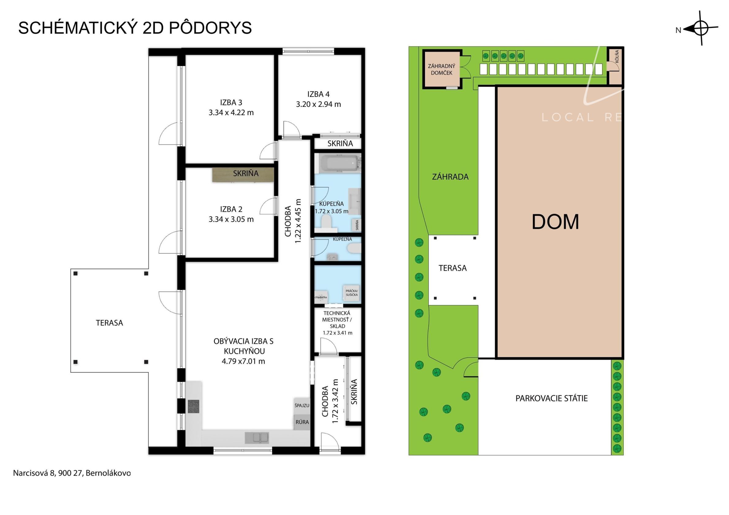 Dom sa nachádza v pokojnej novovybudovanej štvrti s kompletnou občianskou vybavenosťou: