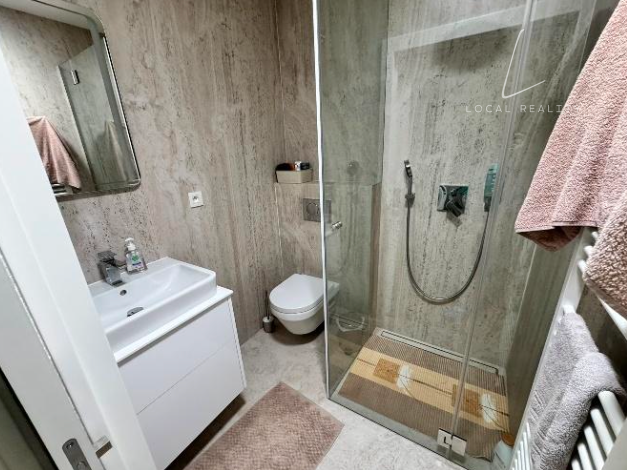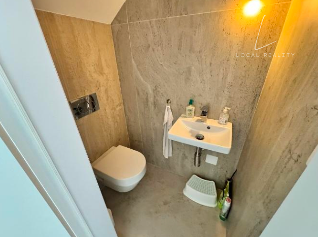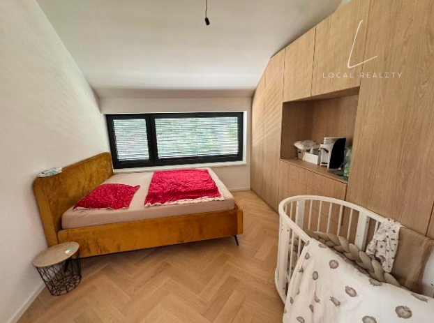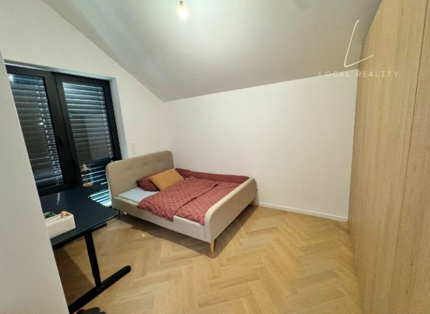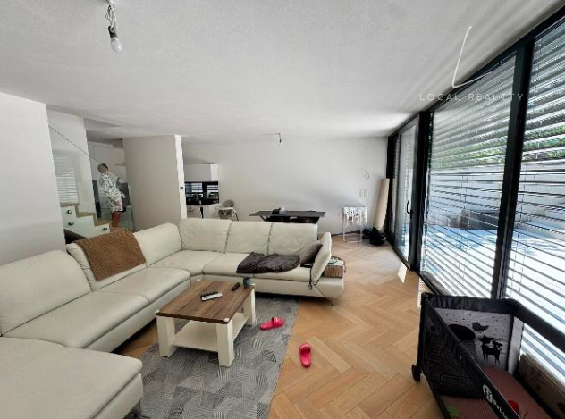 Tento moderný, doposiaľ neobývaný byt sa nachádza v rodinnom dome a rozprestiera sa na dvoch podlažiach. Ponúka komfortné bývanie s celkovou podlahovou plochou 124,9 m² vrátane pivnice, pričom k bytu patrí aj priestranná terasa o výmere 32,5 m² ideálna na oddych.